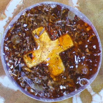 the cross shaped (or round) inlay contains the actual muti, mixed into orgonite